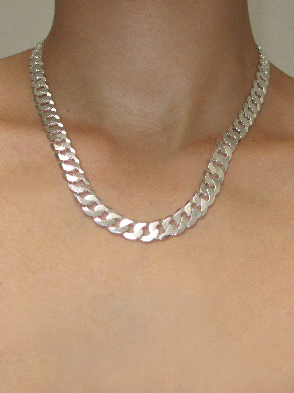 The 925 STERLING SILVER XL CURB CHAIN is a wide flat curb chain that will become your everyday favorite. It looks as good solo as it does layered. Paired here with the 925 STERLING SILVER CURB CHAIN