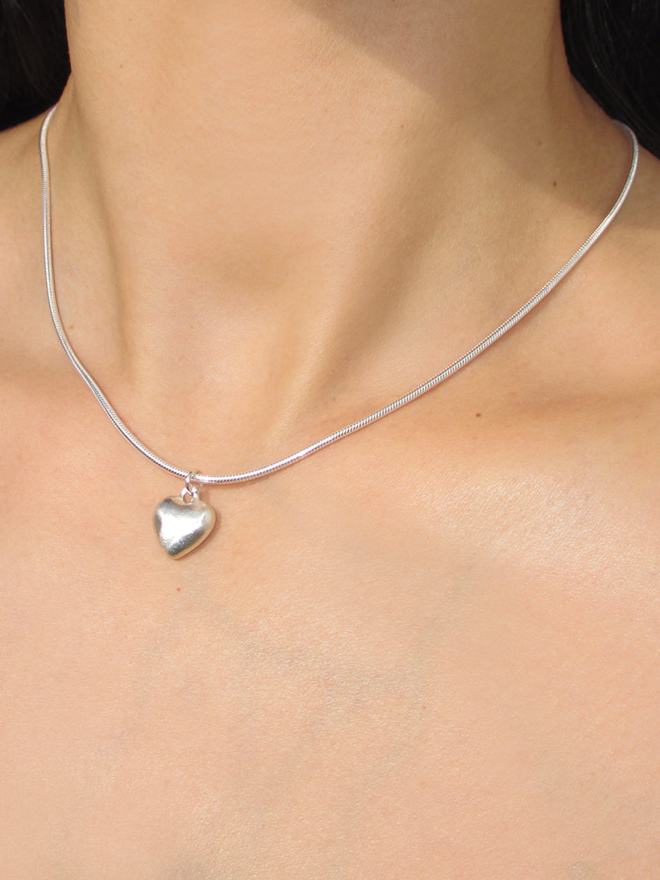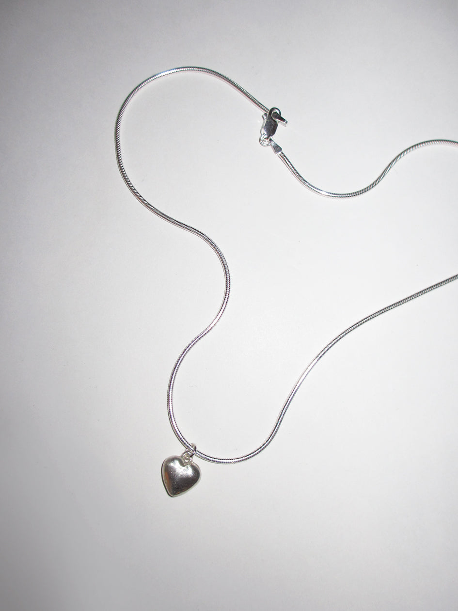THE MINI HEART SNAKE CHAIN 925 sterling silver is handmade by us in Los Angeles. The puffy mini heart is made using a lost wax casting method where we hand carve the heart out of wax which is then cast into 925 sterling silver and hand polished to perfection, while leaving some texture for a one-of-a-kind look. Strung on a 925 sterling silver snake chain, this piece is bold yet perfect for everyday wear.