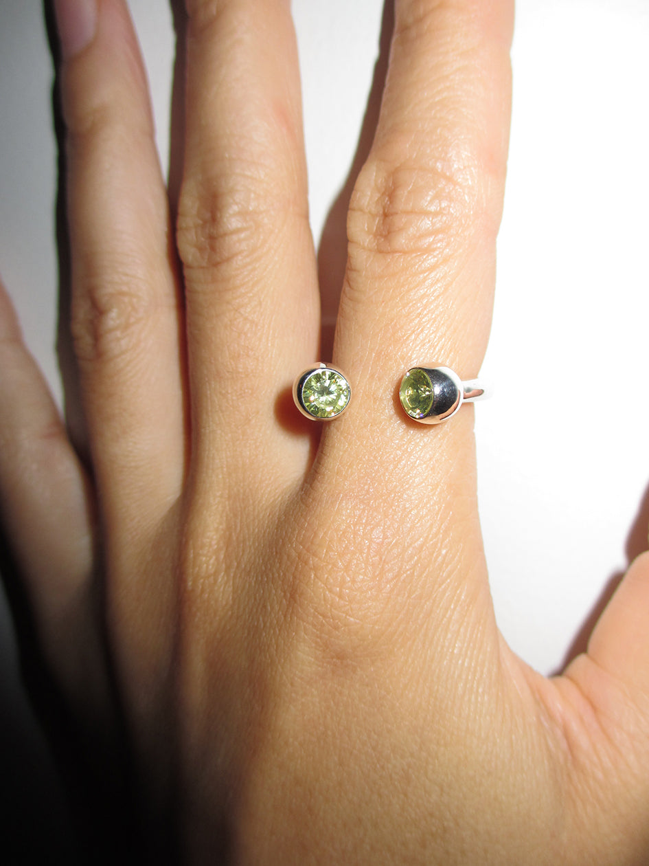 THE PIERCED RING is made from 925 sterling silver and adorned with stunning apple green cubic zirconia. This piece is perfect for everyday-wear but also complements dressier looks so well! Wear it solo or stacked with other rings!