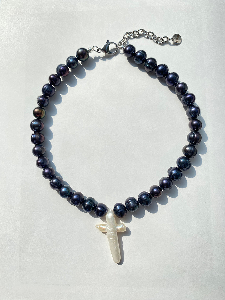 BLACK PEARL GEMMA CROSS CHOKER