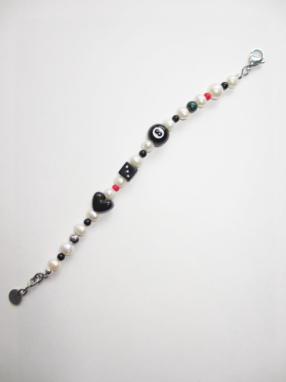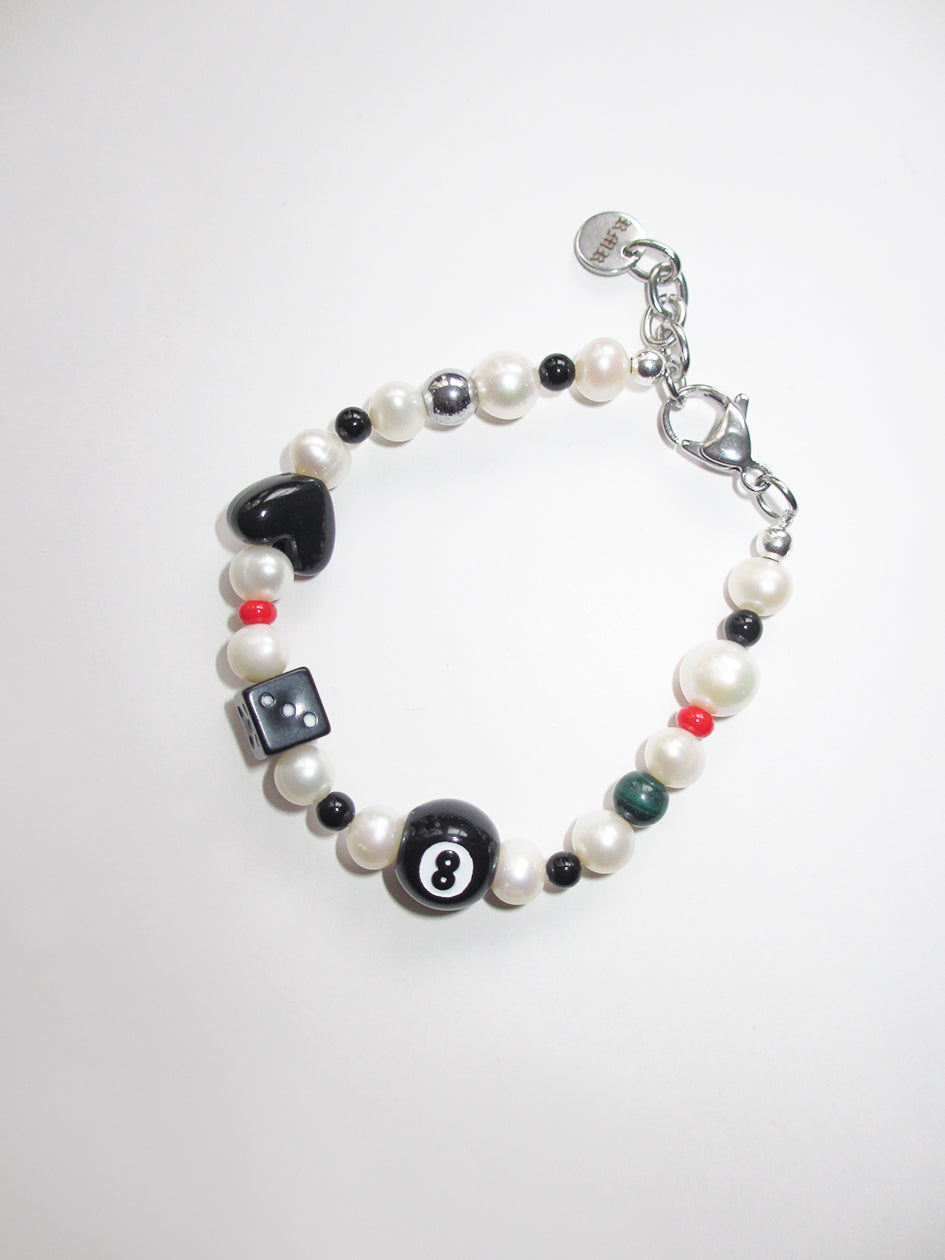 The bracelet version of our AESTAS 8 BALL CHOKER features the same 8 ball, tiny dice and heart bead as the choker. This bracelet is a fun addition to any look!