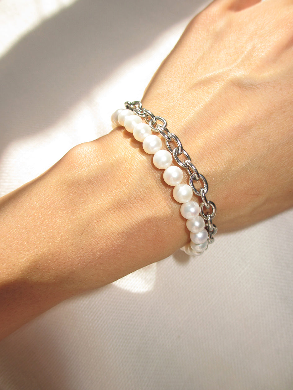 THE FRESHWATER PEARL ROLO CHAIN BRACELET