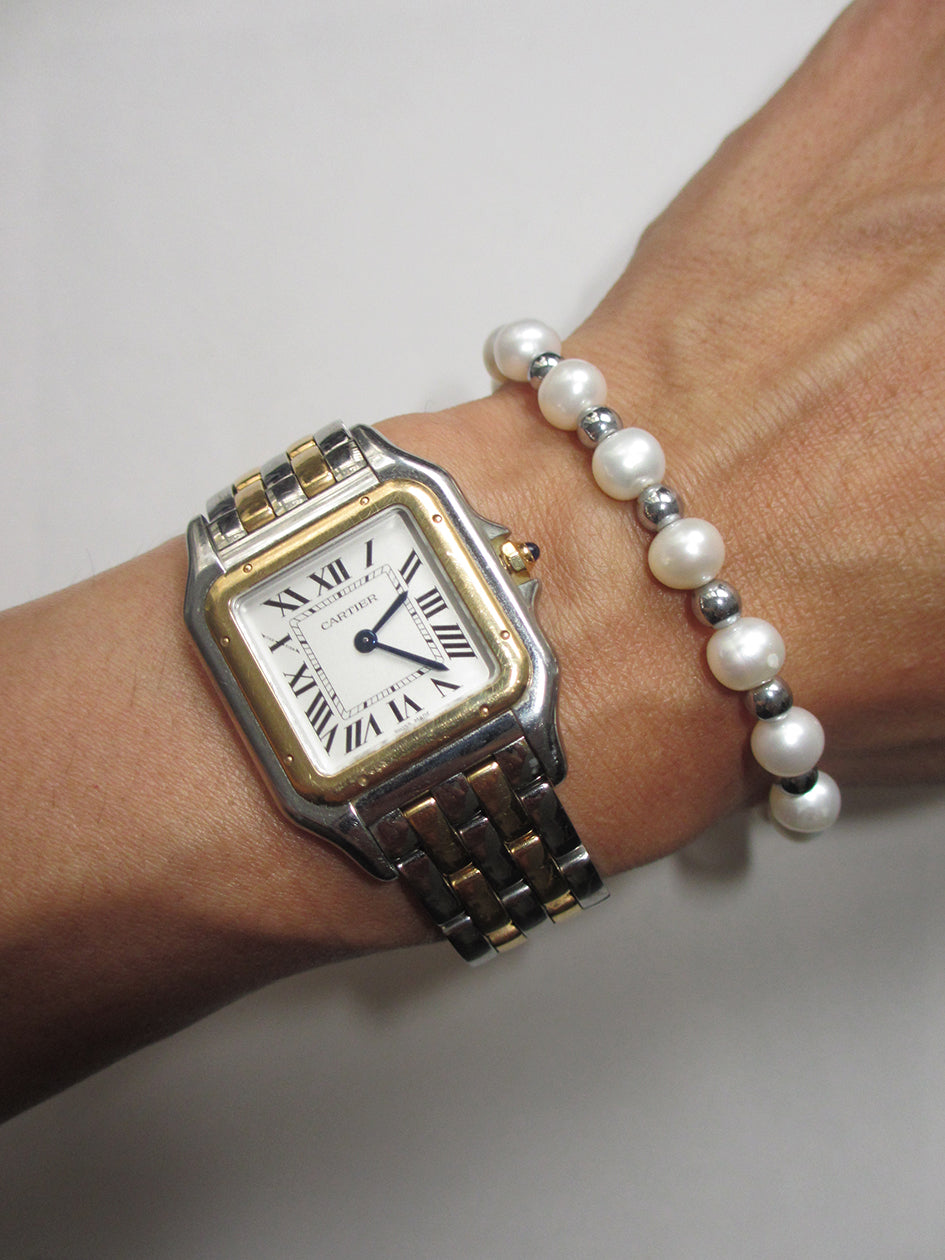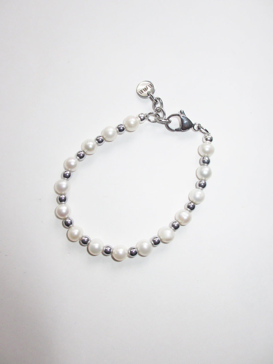 THE SILVER HEMATITE PEARL BRACELET is handmade using white freshwater pearls and silver hematite, a genuine gemstone. Make this piece your everyday favorite. Pair it with the HEMATITE PEARL CHAIN NECKLACE for the complete look!