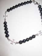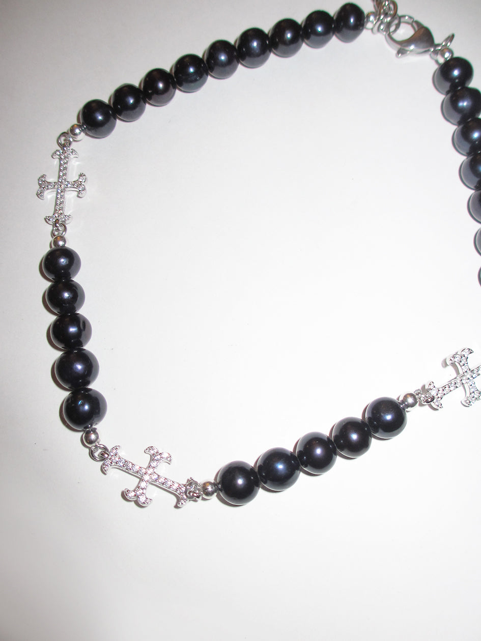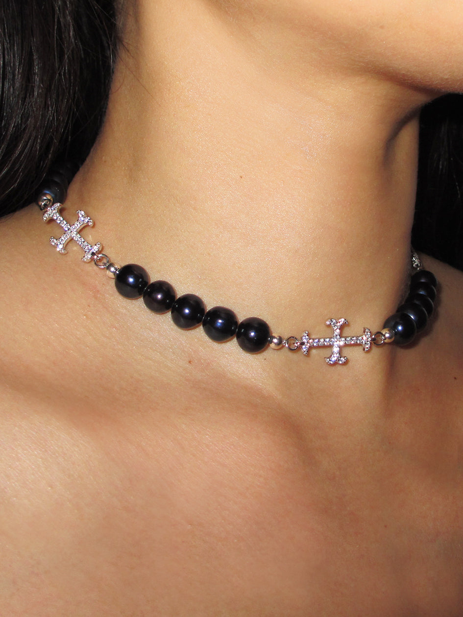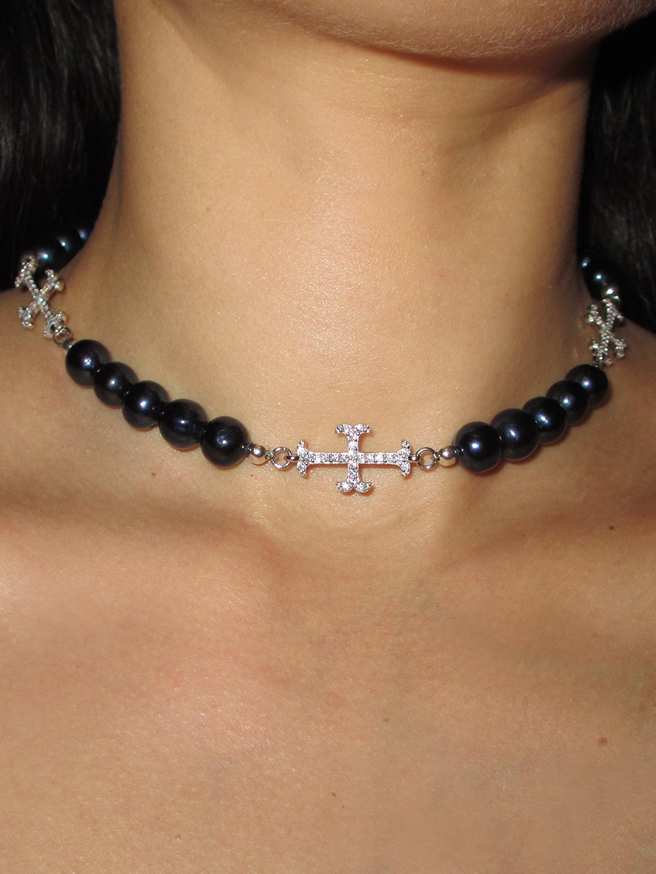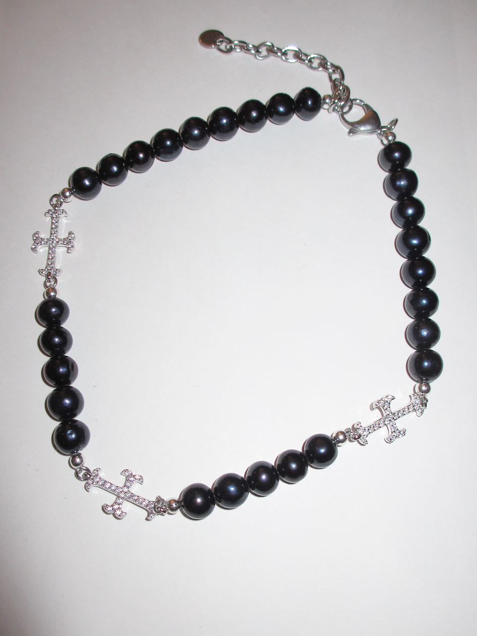 TRIO ADAMAS CROSS BLACK FRESHWATER PEARL CHOKER