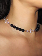 THE TRIO ADAMAS CROSS BLACK FRESHWATER PEARL CHOKER features our signature ADAMAS CROSS charms on stunning black freshwater pearls. This piece is truly one-of-a-kind and will add a unique touch to all your looks. Wear it day to night!