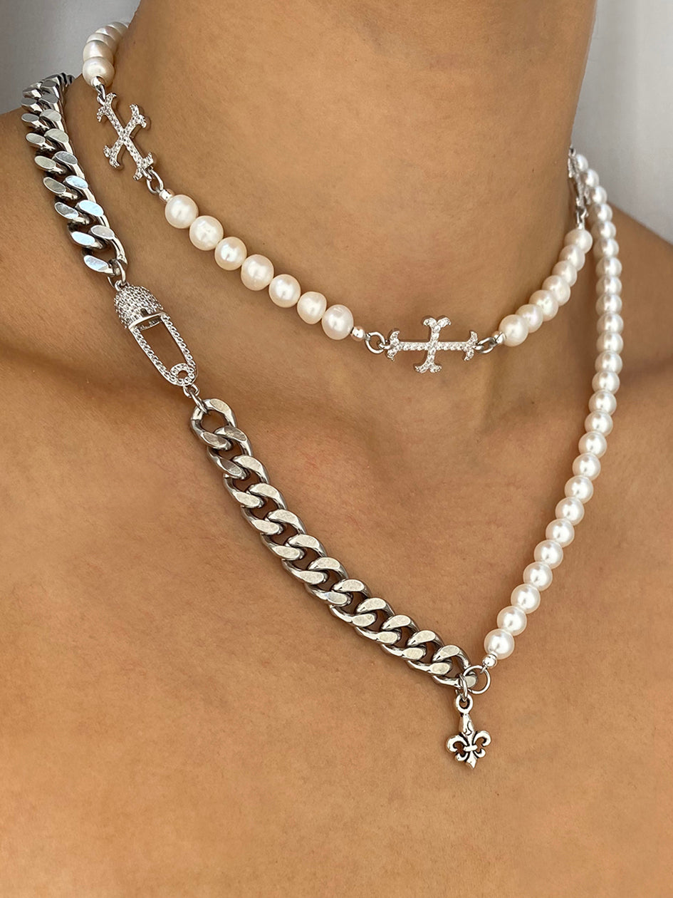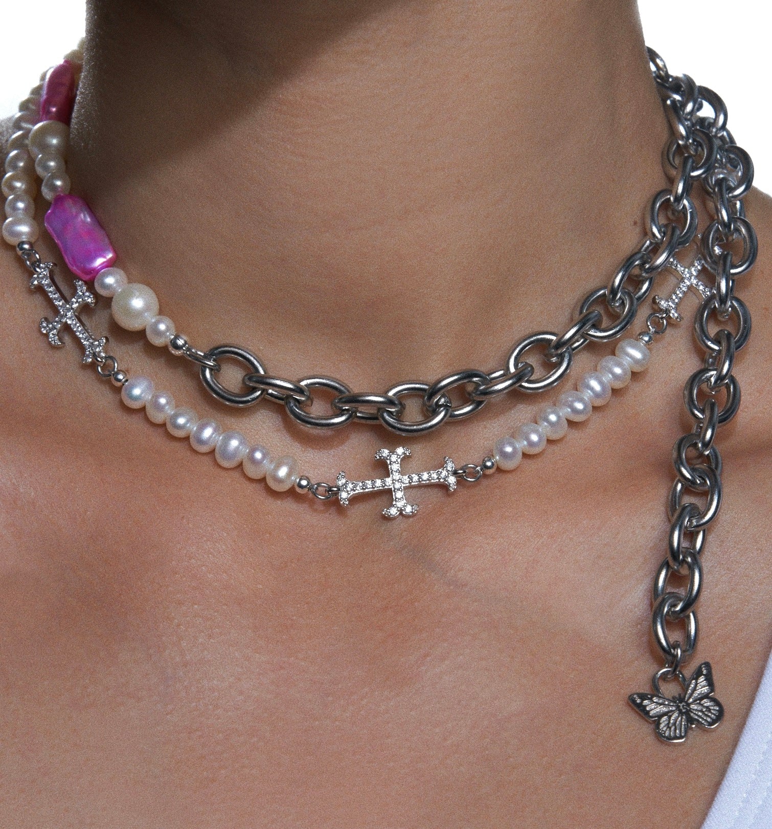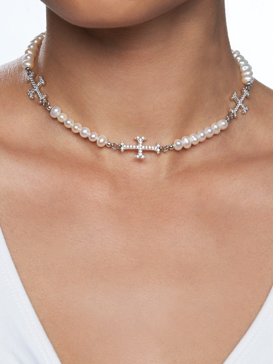 TRIO ADAMAS CROSS FRESHWATER PEARL CHOKER