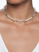 THE TRIO ADAMAS CROSS FRESHWATER PEARL CHOKER features our signature ADAMAS CROSS on genuine white freshwater pearls. This piece is truly one-of-a-kind and will add a unique touch to all your looks. Wear it day to night!