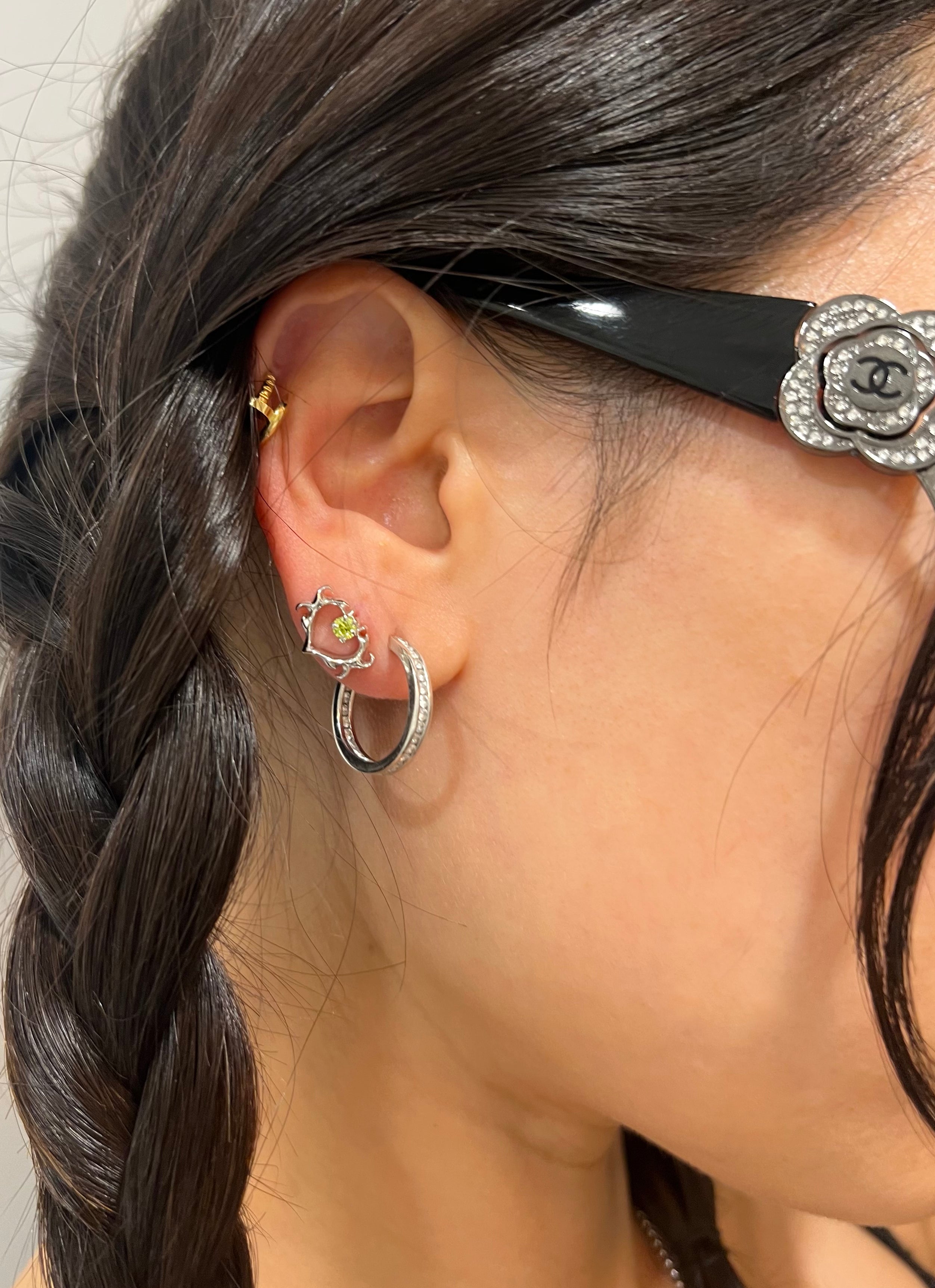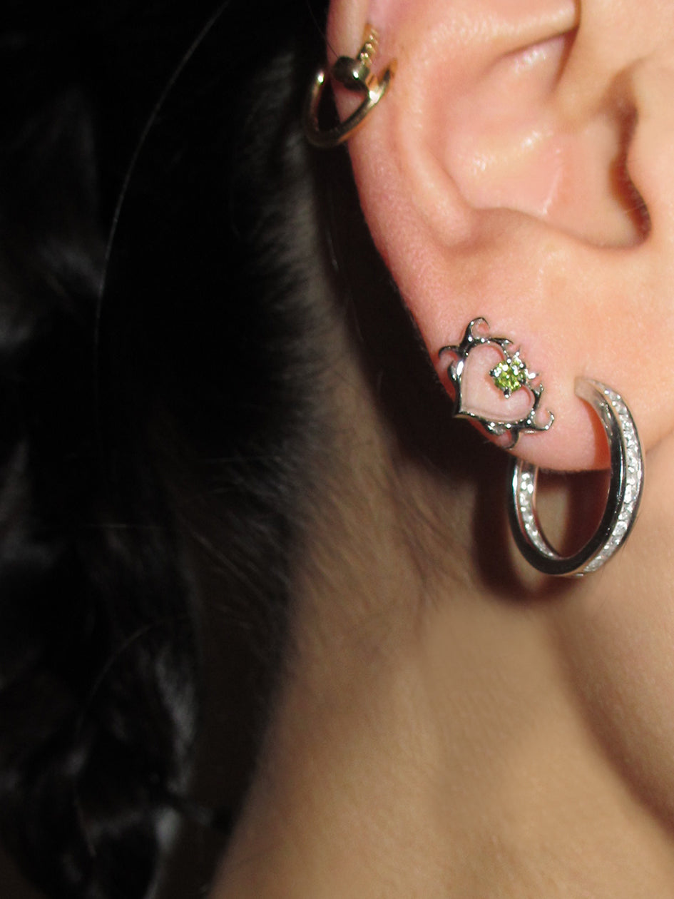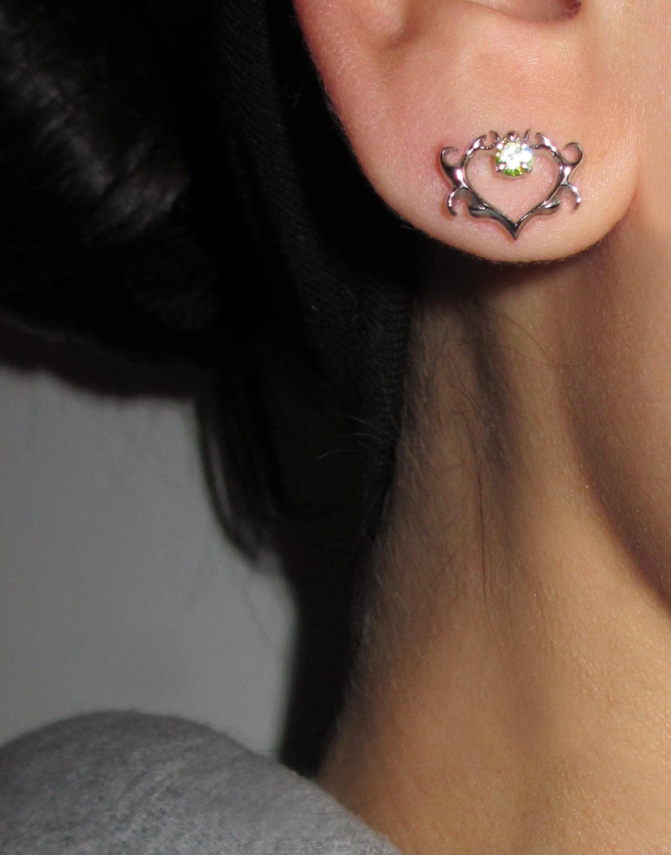 THE SELMA HEART STUDS in 925 sterling silver features our SELMA heart in a super adorable miniature size, adorned with an apple green CZ. These stunners can be worn on their own or stacked with other earrings.