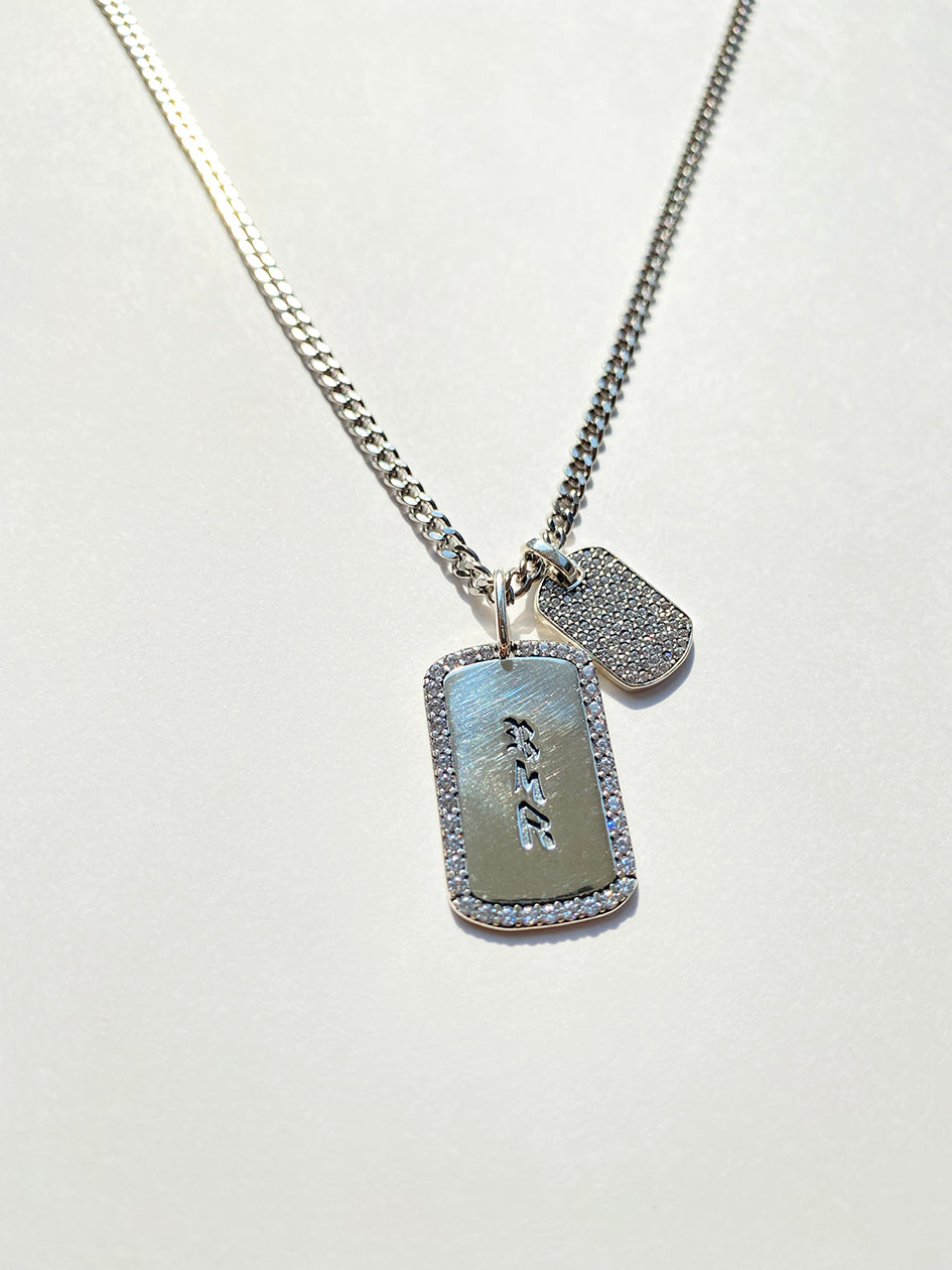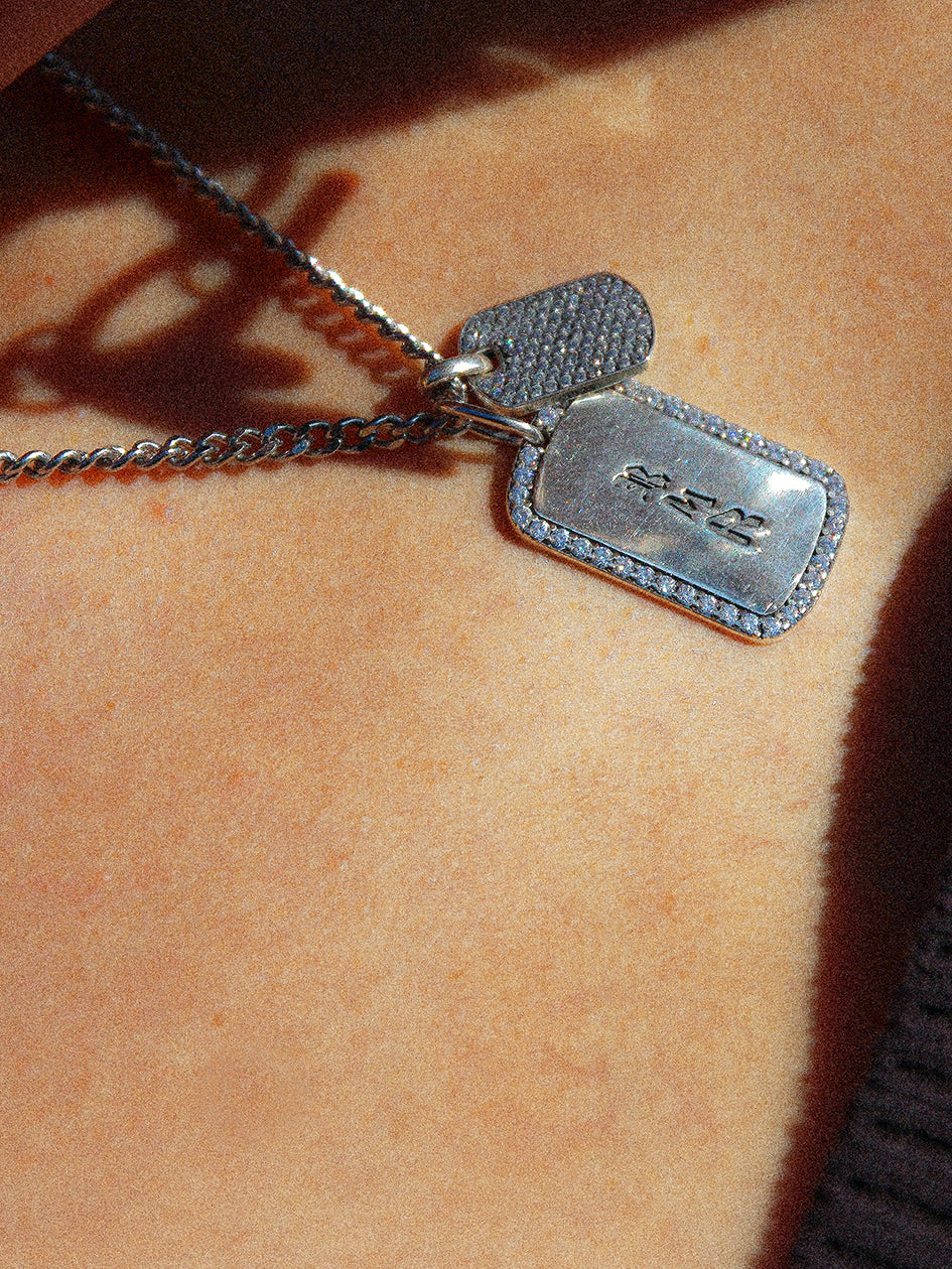 THE DBL TAG CHAIN combines our MINI TAG with our signature RMR TAG, both made out of 925 sterling silver on a stainless steel curb chain. We layered this piece with our other tag chains for a complete RIMOR moment!