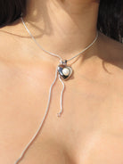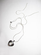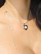 THE VENUS HEART SNAKE CHAIN NECKLACE features our signature venus heart pendant on an adjustable snake chain, all in 925 sterling silver. The adjuster bead lets you wear the necklace as a choker or a long necklace. This piece looks as good on it own as it does layered.