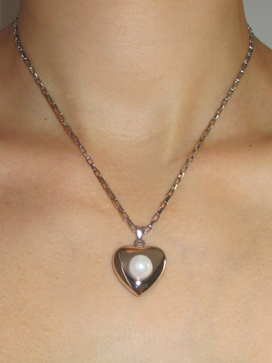 - 925 Sterling Silver Heart Pendant with Shell Pearl