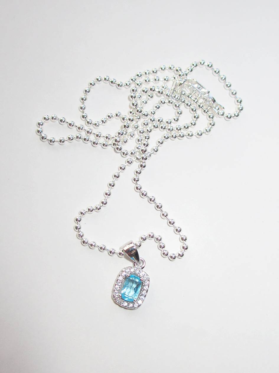 LIGHT BLUE GEM BALL CHAIN 925 sterling silver