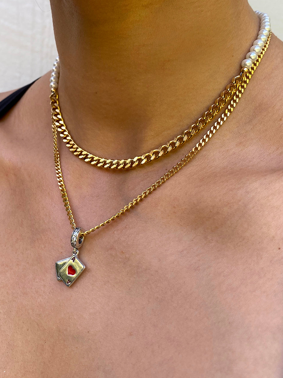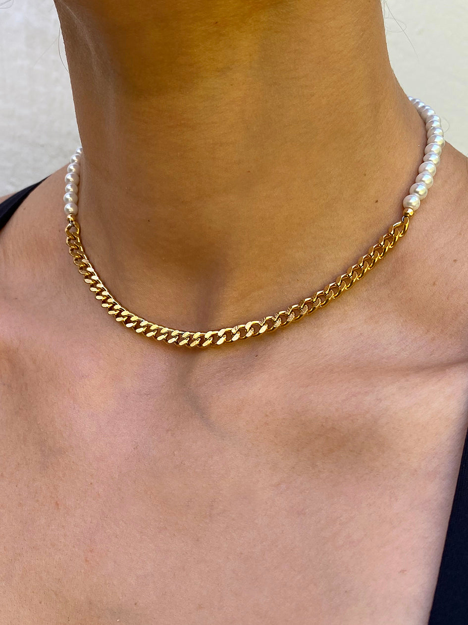 THE DELICATE PEARLY CHAIN CHOKER GOLD is dainty and feminine, but also cool due to the matte gold curb chain. We love it layered with other chains.
