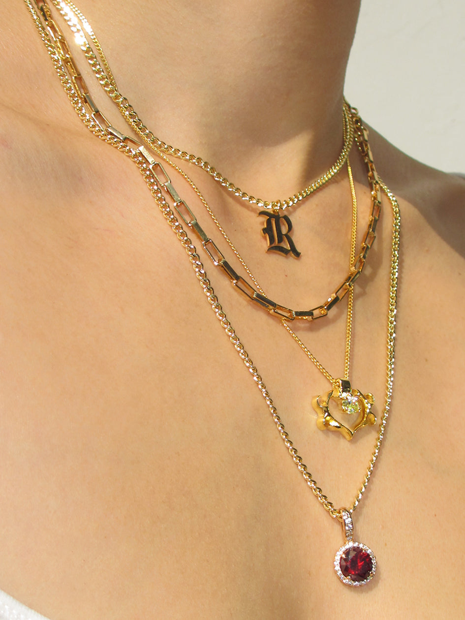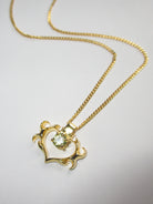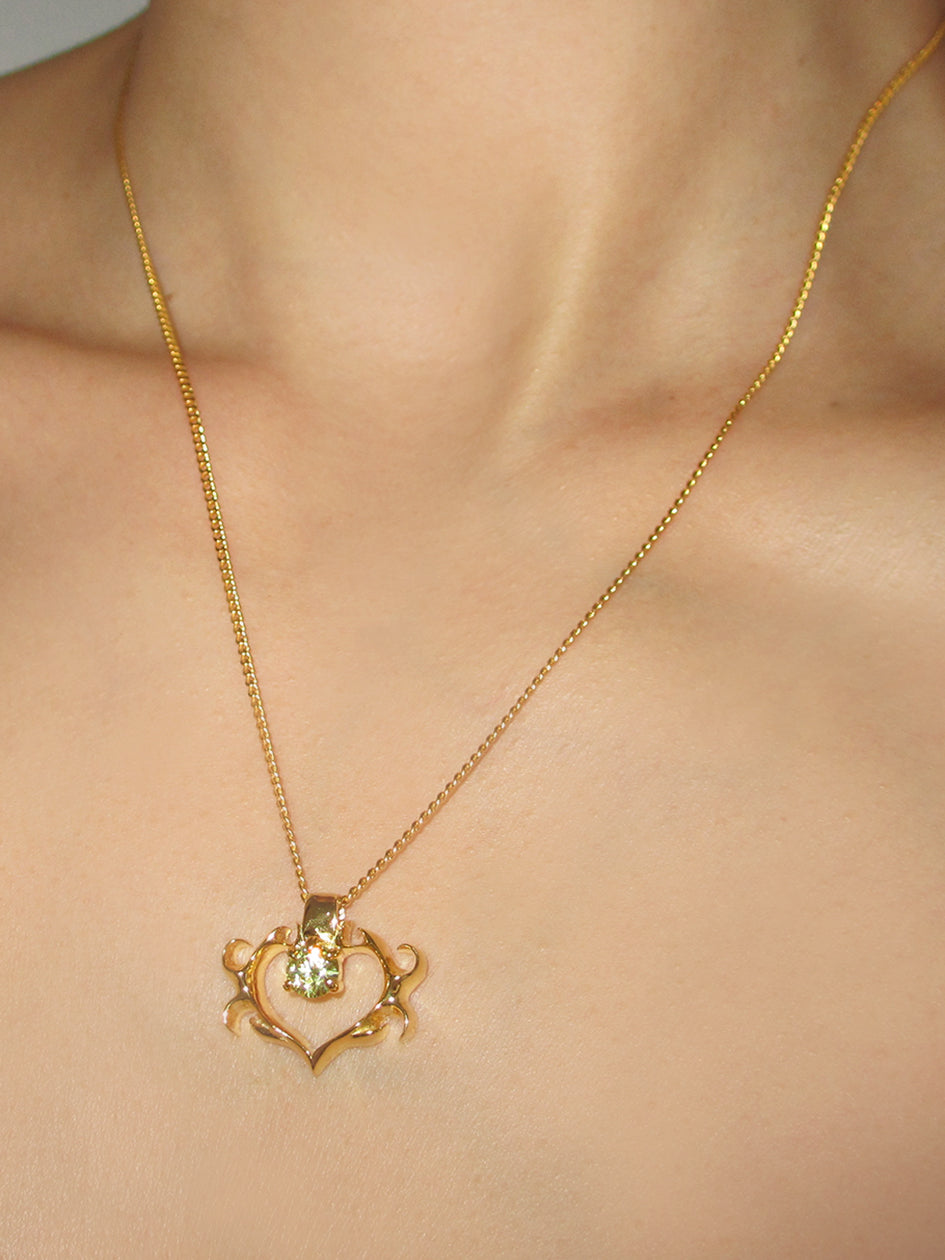 THE MINI SELMA HEART CHAIN features a miniature version of the original SELMA HEART pendant. Crafted from 925 sterling silver, plated in 18K gold, with an apple green cubic zirconia, this one-of-a-kind piece looks as good on its own as it does layered.