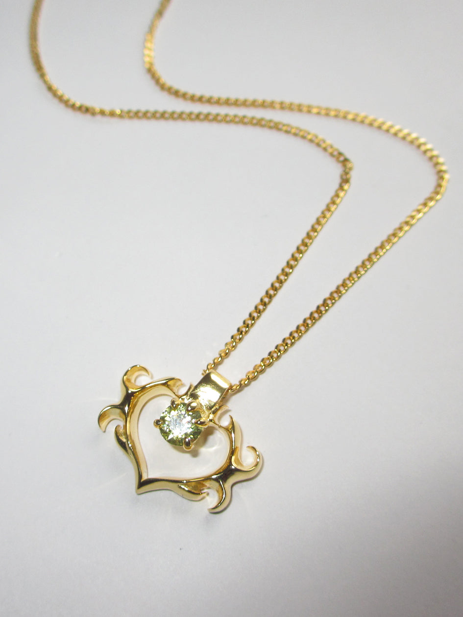 - 925 Sterling Silver Heart Pendant with Apple Green Cubic Zirconia and 18K Gold Plating