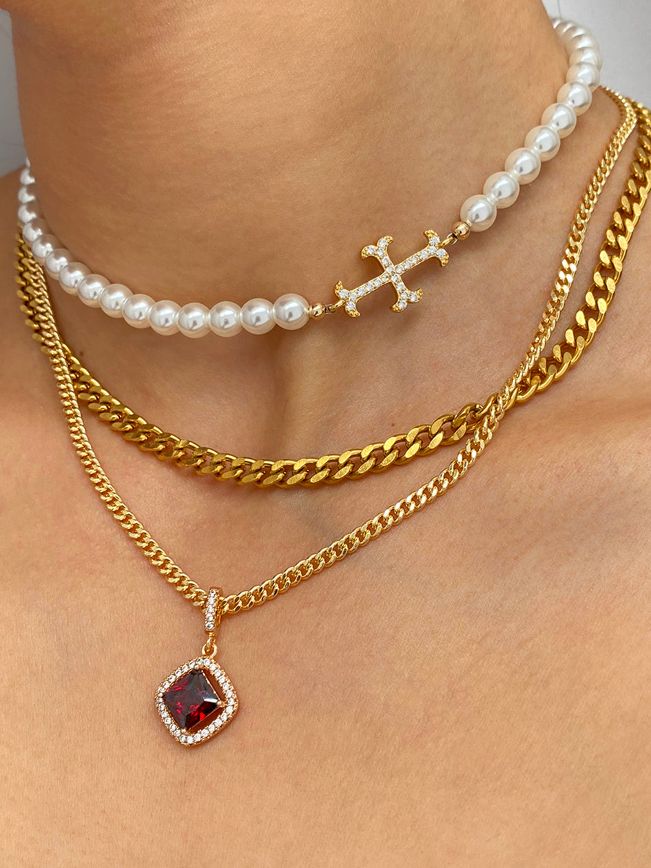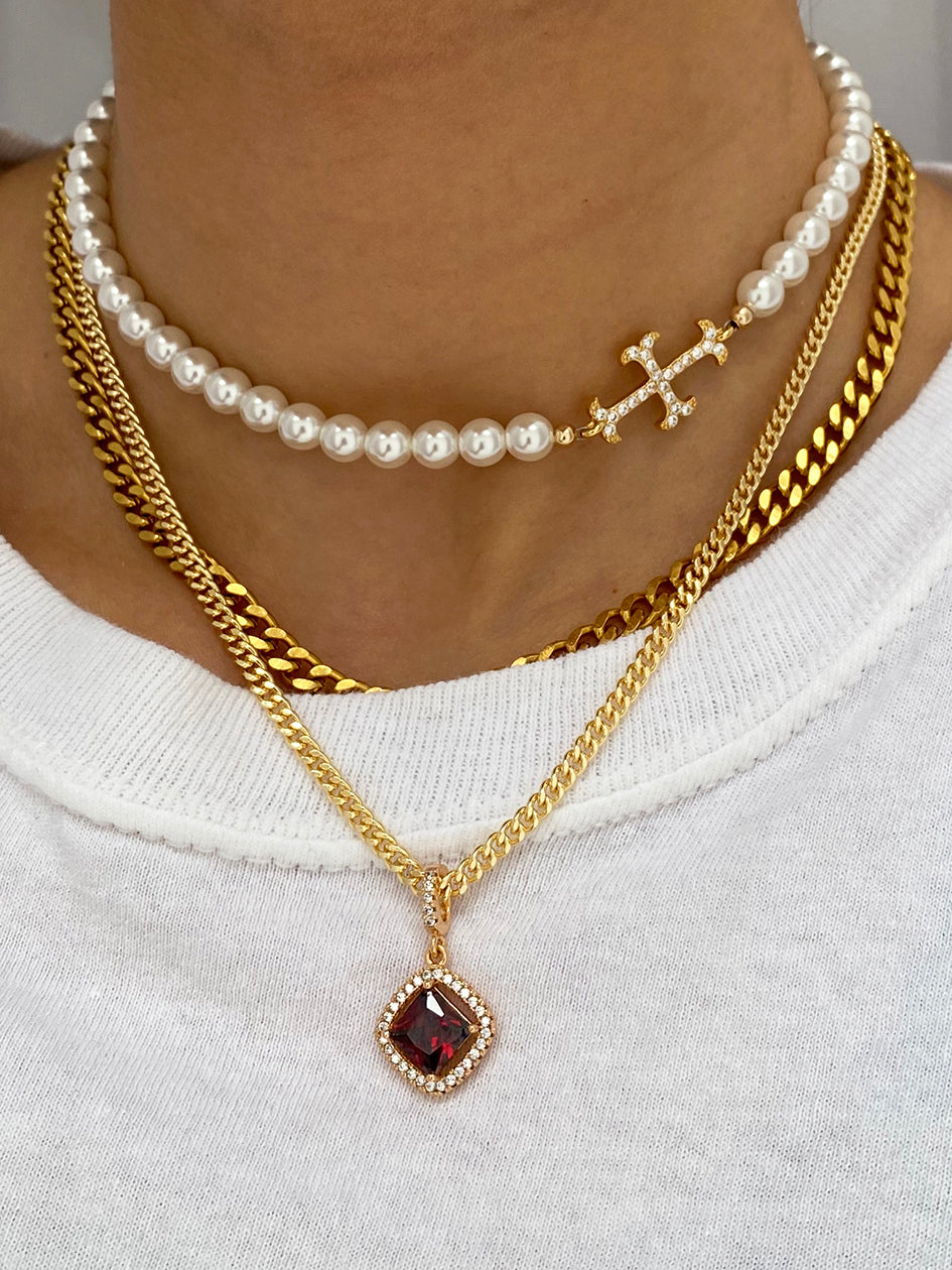 THE PEARLY ADAMAS CROSS CHOKER features white pearls adorned with a unique cross charm. This piece has the perfect combo of edgy and feminine. Comes with an extension chain so you can either wear it as a tight choker or make it more of a relaxed fit. Wear it day to night!